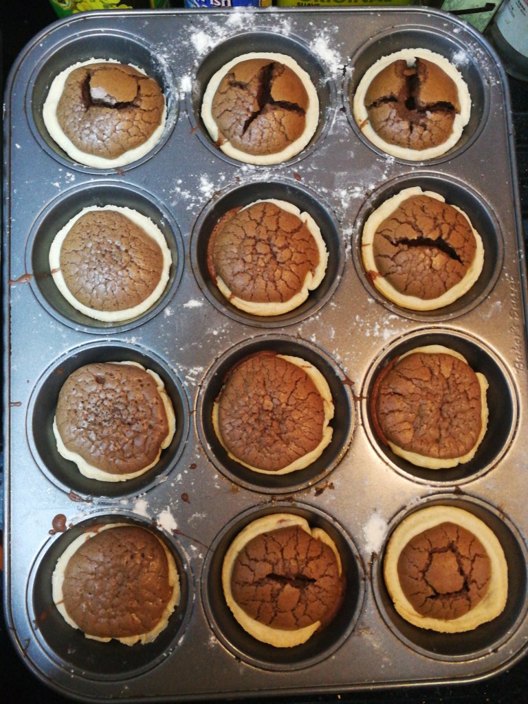 Now, in the original recipe, these pies are meant to be baked only until the middle is just set but still a bit wobbly. However, I’ve purposely over-baked mine slightly, as I wanted to the inside to taste more like a brownie than a pudding. Obviously, if you want a soft, jelly-like centre, then don’t bake for as long, and keep an eye on them. This would make a more traditional mud pie. We all know I don’t always do things traditionally, but this experiment worked out VERY well.