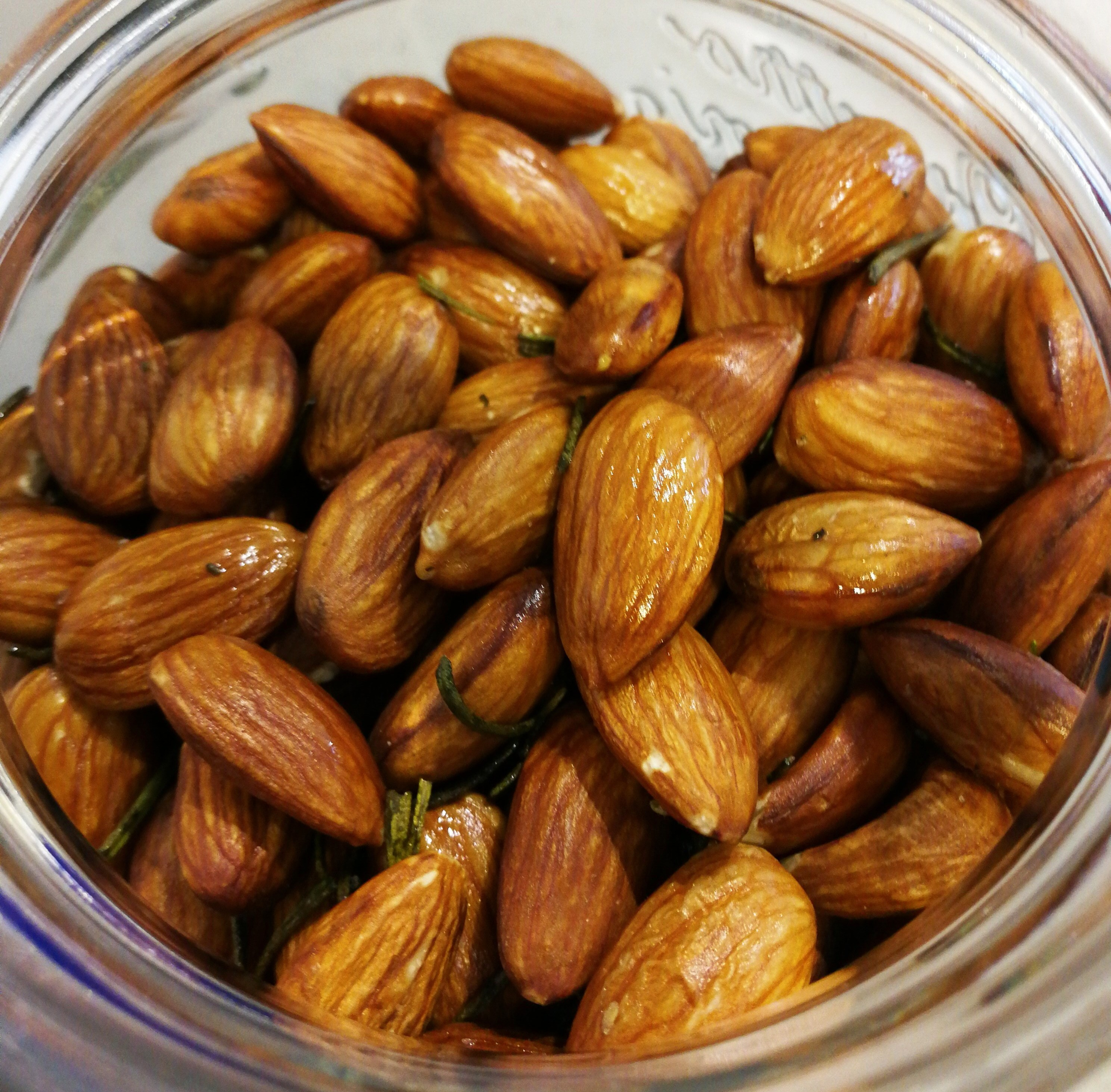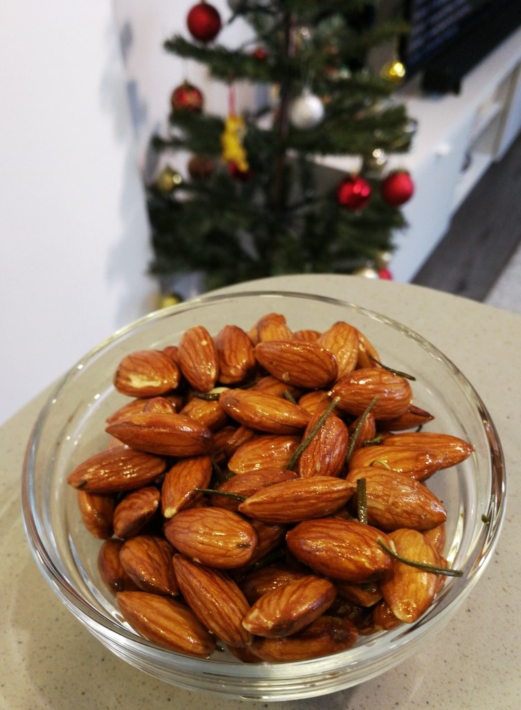 Anyhow, on with the roasted nuts. I love almonds. I eat them a lot. In granola, in chocolate, as milk. They’re delicious. But, you know what makes almonds more delicious? Rosemary, olive oil and salt. Yep. You know it. Now, go, hurry to the kitchen and make these to snack on while you drink mulled wine (or champagne/prosecco) and pretend that you’re ready for Christmas tomorrow.