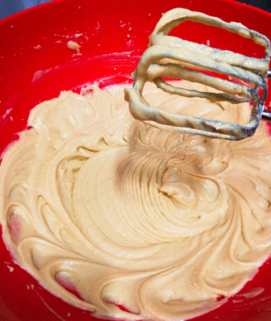 - Beat together the butter and sugars until light and creamy. Add the eggs one by one, mixing well after each addition. Then beat in the vanilla extract.