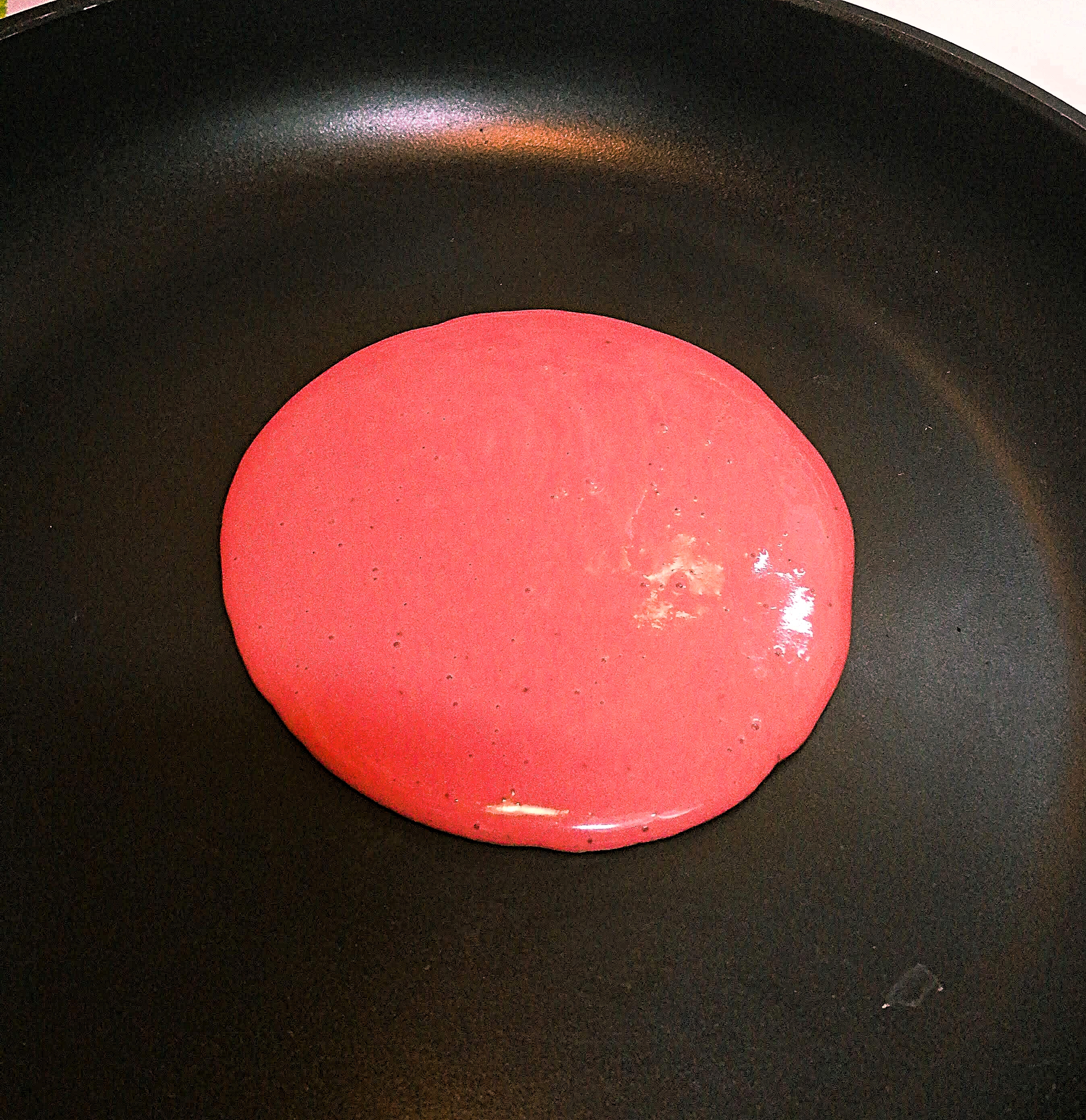 Either way, seeing my friend’s Instagram post about red velvet pancakes made me want to try them out. I already had all of the ingredients I needed at home, plus I simply used the remaining egg yolks from the pavlova, rather than new eggs. Mixing the egg yolks with milk made it less thick, and more of an egg-like consistency.