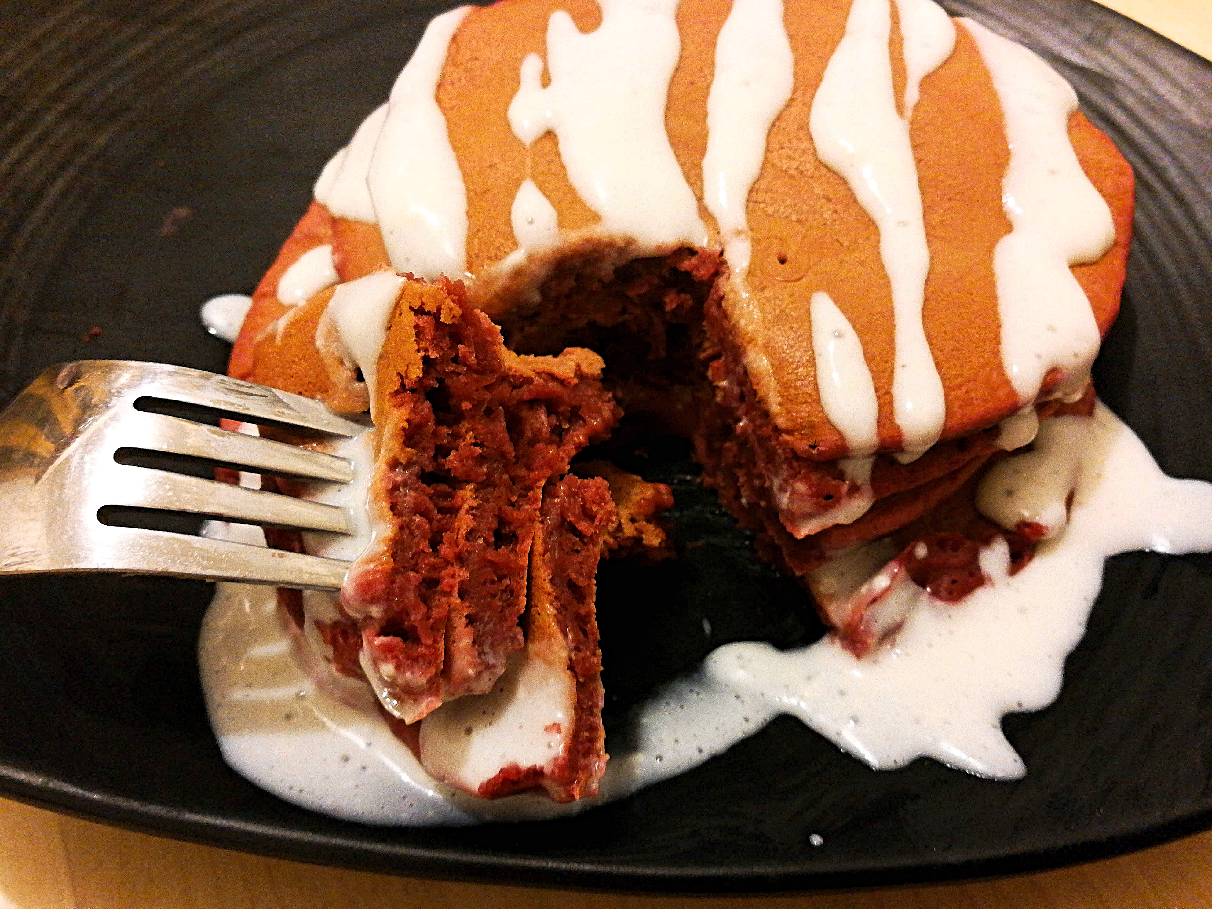 These pancakes also made me realise that I need to come up with some more breakfast recipes that are quick, easy and healthy, because these red velvet pancakes are an indulgence to be had once or twice a year (for me at least).
