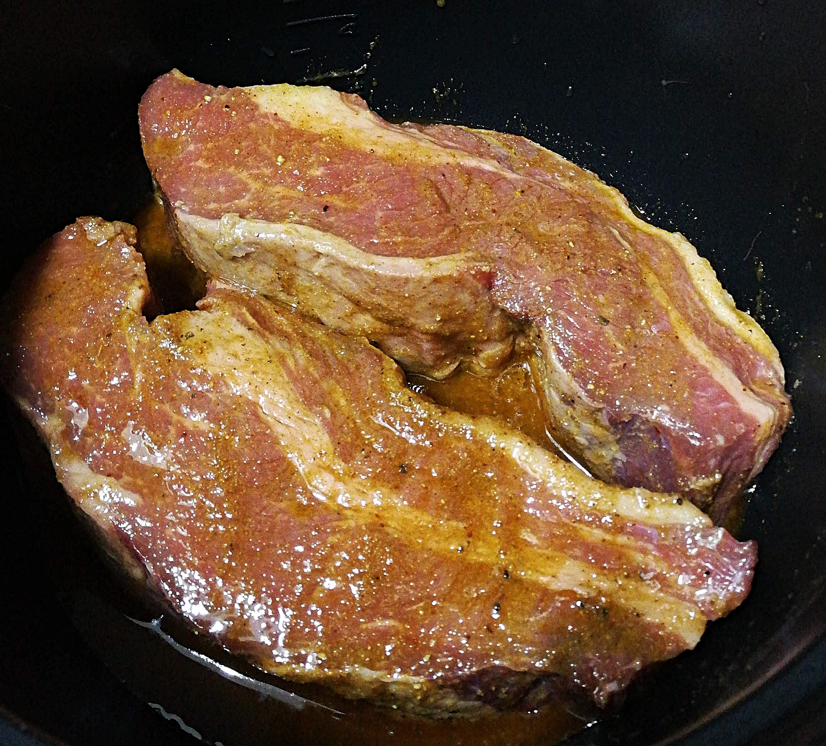 - Place the brisket in the slow cooker (spraying with non-cook spray prior to adding the beef if desired).