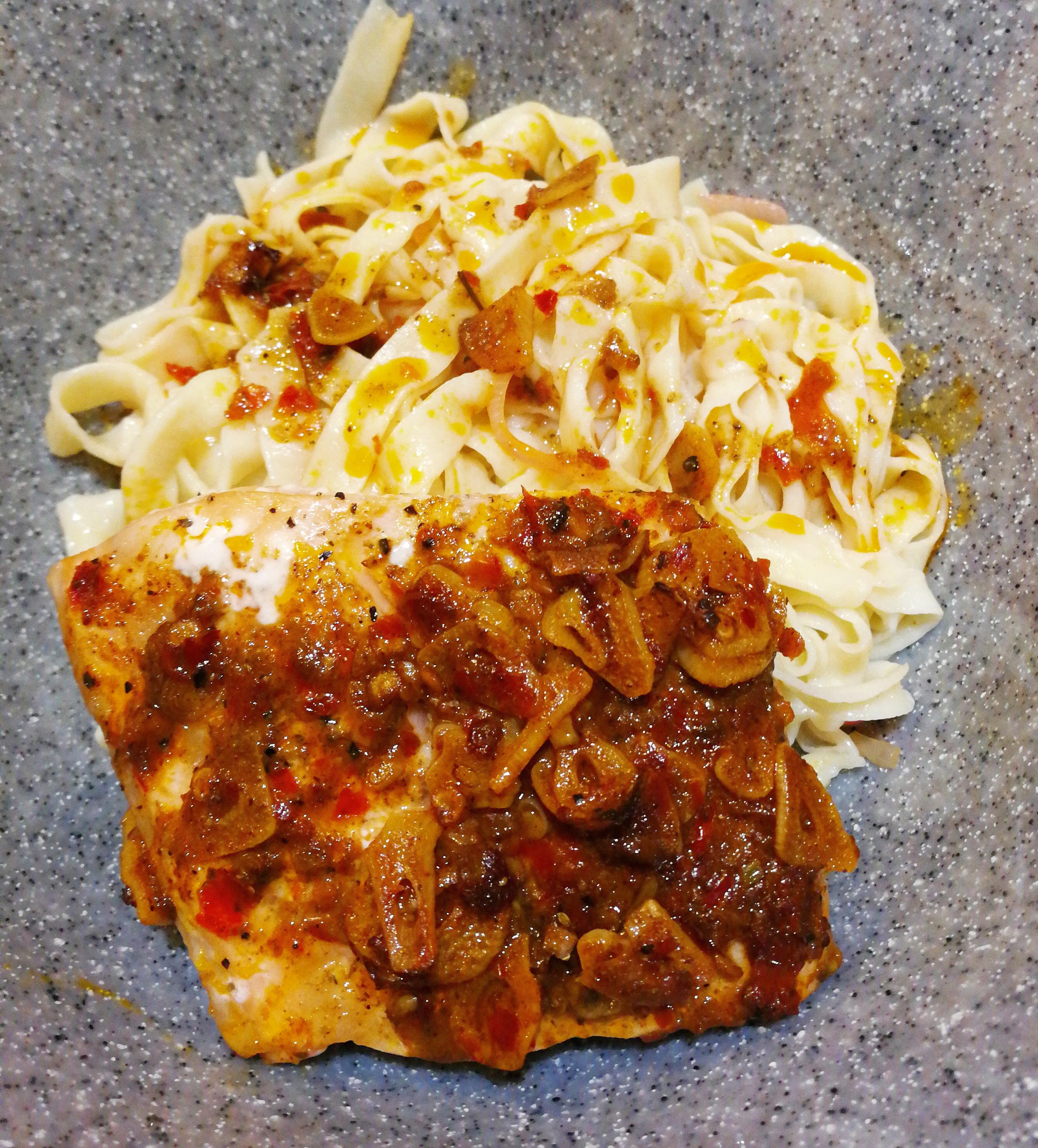 It’s so easy, and incredibly delicious. The salmon would pair well with potatoes, rice, fresh pasta or roast veggies and some bread (to soak up the sauce).