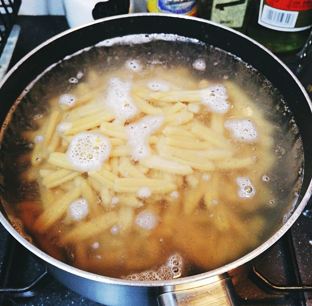 - Boil a pot of water and cook the pasta according to the instructions. Drain and set aside.