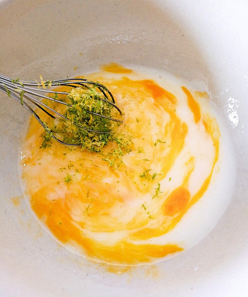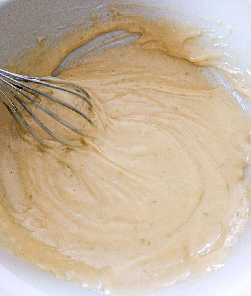 - Add the eggs, zest and lemon juice. Stir until well incorporated.