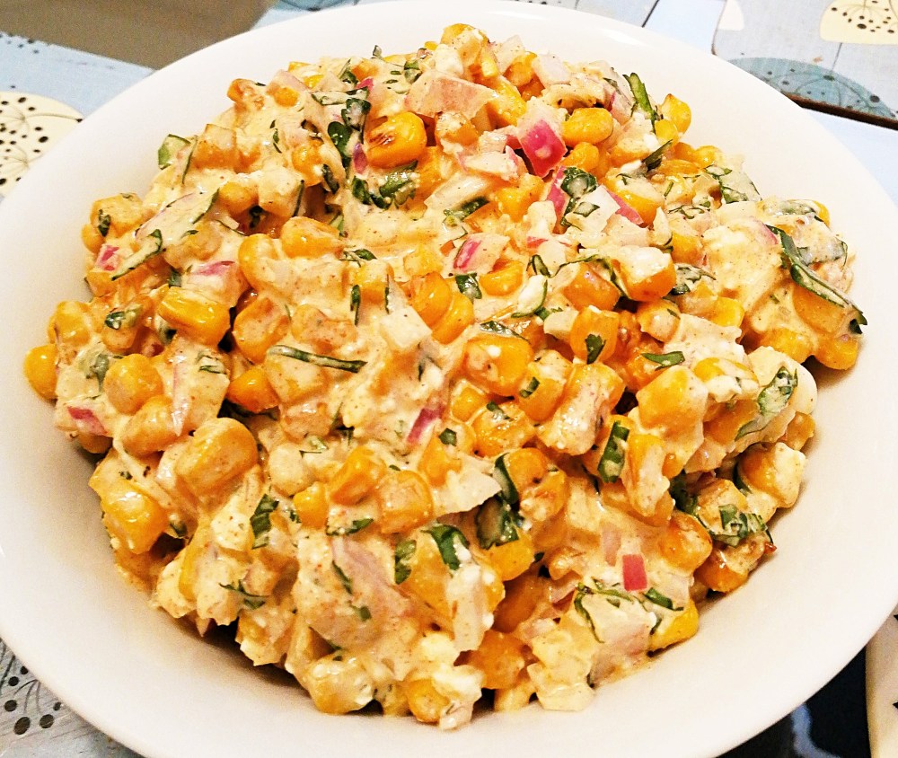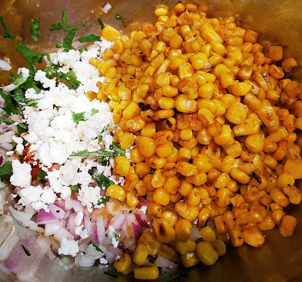 - In a large mixing bowl, add onion, spices, coriander, Feta, corn and lime juice. Combine well. Season with pepper and salt to taste.