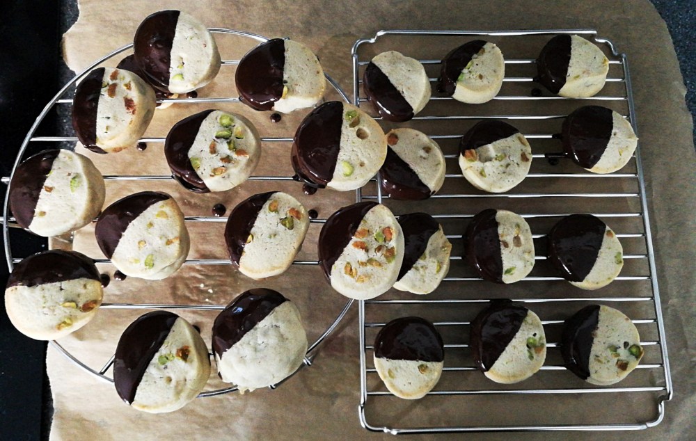 These biscuits are soft, crumbly, and not overtly sweet. The dark chocolate just adds an extra flavour to the combination, so they can be made without dipping them in chocolate (but why wouldn’t you?).
