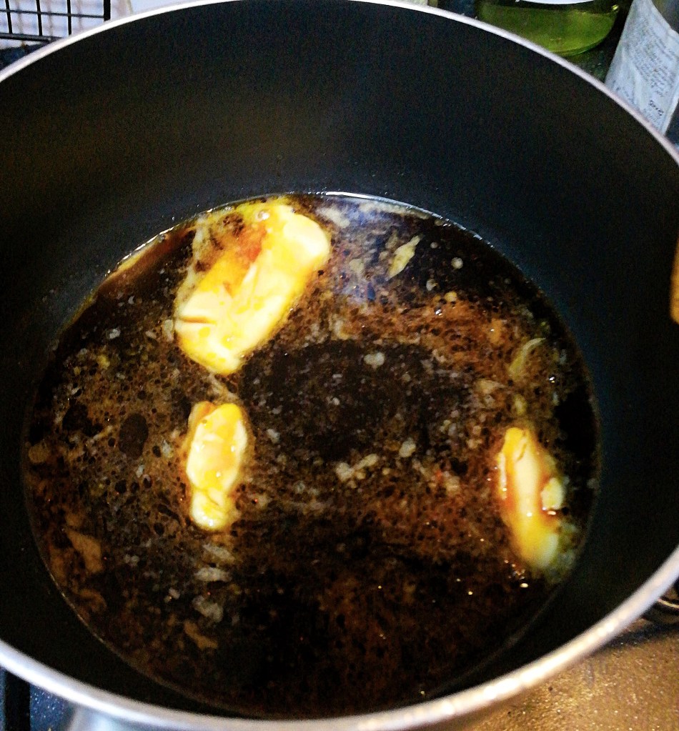 - Add 30 grams of butter, water and the port to the saucepan and cook over a medium heat until the butter has melted. Stir, then set aside to cool until warm to touch.