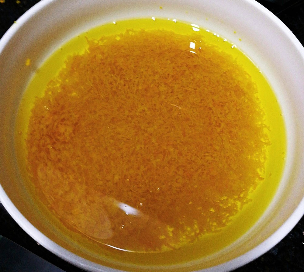 - Zest three of the oranges, and place the zest in a shallow bowl with the olive oil. Allow to infuse for one hour.