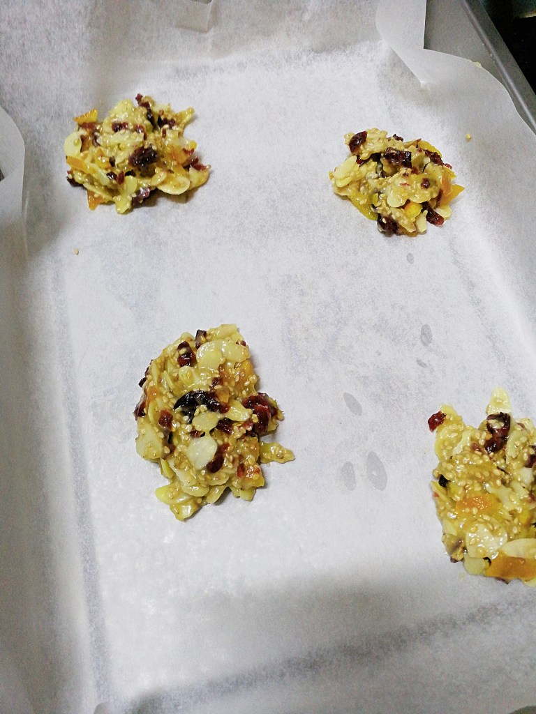 I’d seen florentines in a multitude of Christmas cookbooks, and never even tried one prior to this recipe. This is a mostly Jamie Oliver recipe, with a few tweaks from Nigella, a Canadian Christmas book and my own taste buds.