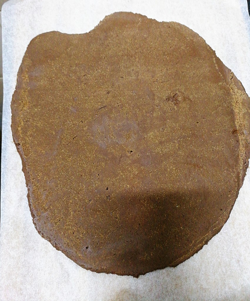 - Scoop the dough onto a large sheet of parchment paper and cover with another piece of parchment paper. Roll out to 1/2 cm thick. If you are going to use a circular cookie cutter, then you can roll it out into a rough circle. If you want to make more rectangular biscuits, then roll the dough into a rectangle. Set on a tray and place in the freezer for 30 minutes.