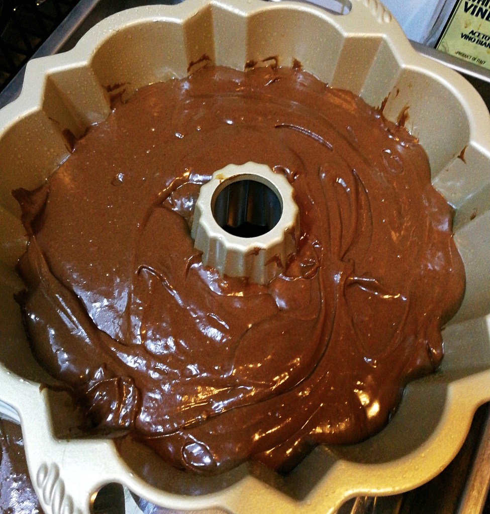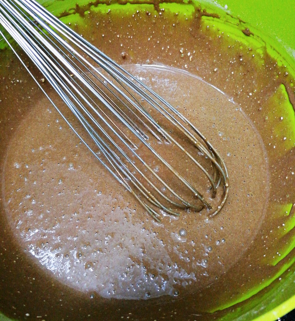 - Add milk, sour cream, eggs and vanilla to the flour mixture. Whisk to combine. Gradually add the coffee and melted chocolate mixture. Continue to whisk until a smooth batter has formed.