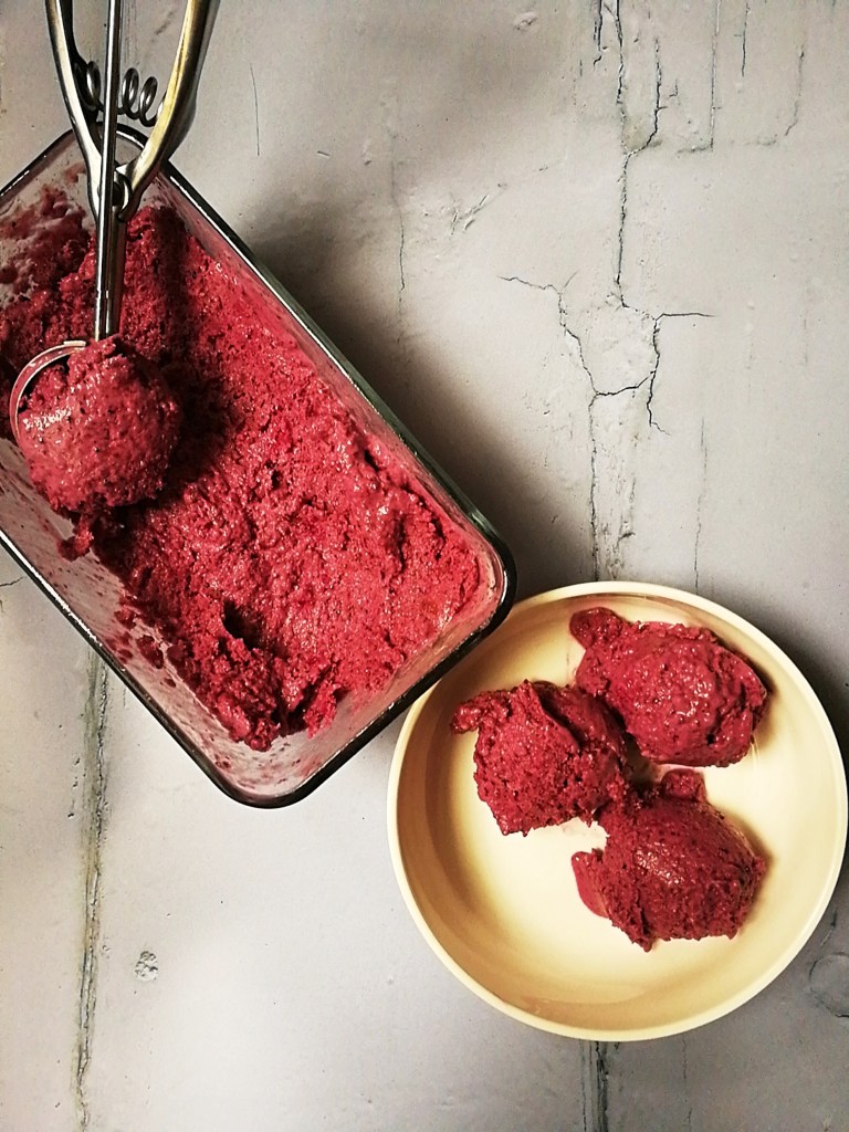 - Pour into a glass loaf dish, cover and set in the freezer. Every 20 minutes, whisk the mixture so as to prevent ice crystals from forming. Do this for 3 – 4 hours, until it’s thick enough to scoop.